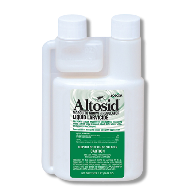 Altosid Liquid Larvicide, manufactured by Zoecon, is a superior insect growth regulator and liquid larvicide that features a microencapsulated formulation that provides longer and stronger residual control against adult mosquitoes and their larvae.