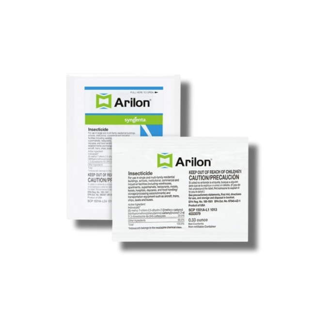 Arilon Insecticide is low-odor, non-clogging, and non-staining. They come in pre-measured packets for convenient mixing. Arilon has been tested and proven effective on many common structural surfaces including concrete, stainless steel, weathered wood, painted surfaces, ceramic tile, brick, and vinyl siding.