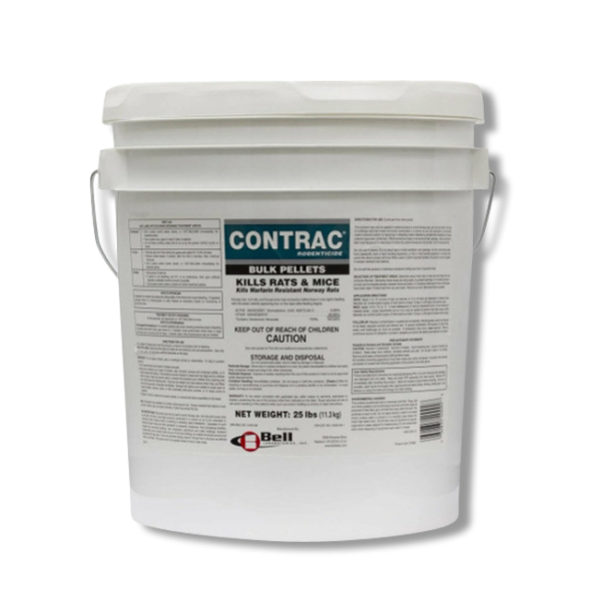 Contrac Rodenticide is a fresh tasting, highly compressed pelleted bait that holds up well, particularly in adverse or moist conditions. It is an excellent clean-out and maintenance bait to control mice and rats, including warfarin-resistant Norway rats. Contrac Pellets come packed bulk in a pail and are ideal for burrow baiting.