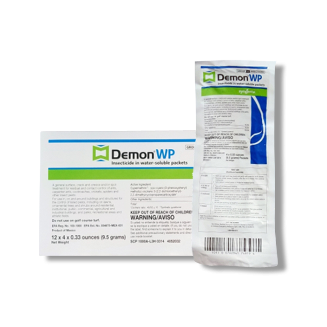 Demon WP Insecticide is manufactured by Syngenta and is a broad-spectrum insecticide that provides a fast kill and long-lasting residual barrier. It is a wettable powder made with the powerful active ingredient, cypermethrin, and comes in packets that dissolve in water. The pre-measured Demon WP Insecticide packets make the mixing process quick and easy without the mess.