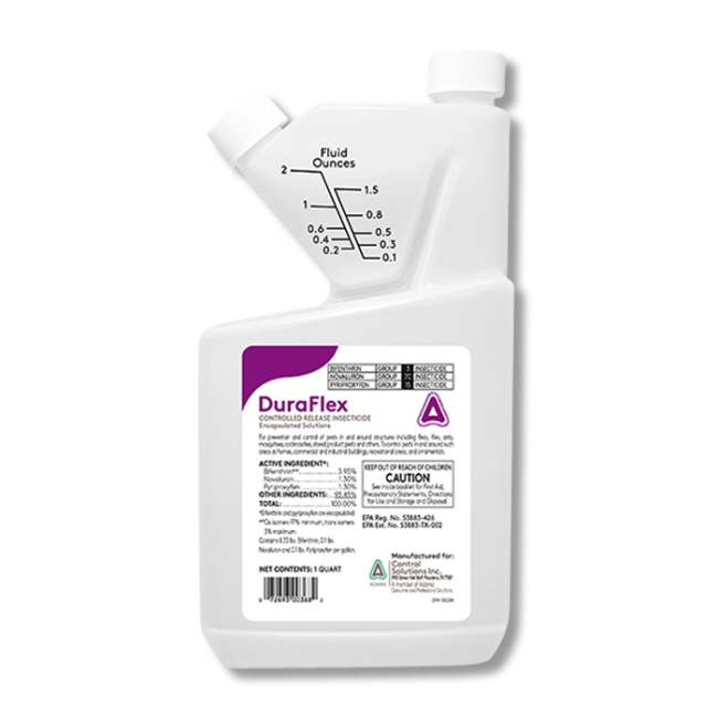 As a controlled release product, DuraFlex CS is formulated with thin and thick capsule walls that allows for immediate release of the product within the application area for a quick elimination of targeted insects and also for some of the product to slowly release over a period of weeks to provide long-lasting control.