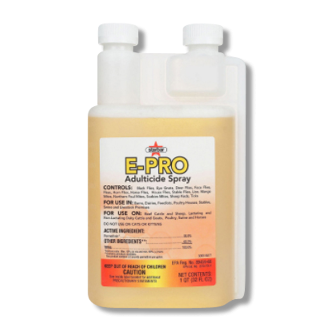 E-Pro Insecticide is manufactured by Zoecon and is a pyrethrum based insecticide used to protect livestock from mosquitoes, stable flies and other insect infestations. E-Pro carries a broad label and is also good for controlling beetles, ticks, cockroaches and insects that frequent agricultural areas. Because it's made from pyrethrins, it is safer to use than most pesticides and is versatile in its use.