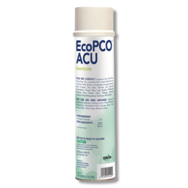 EcoPCO ACU is manufactured by Zoecon and is an environmentally safe, contact aerosol insecticide that delivers a quick knockdown of various pests. Derived from plant oils, the active ingredient, 2-Phenethyl Propionate helps target only the pests, not children or pets. EcoPCO ACU will not stain or leave residue on carpet, floors, or walls. EcoPCO ACU features a pin-stream spray that can reach up to 8 ft, perfect for hard to reach flying pests like wasps.