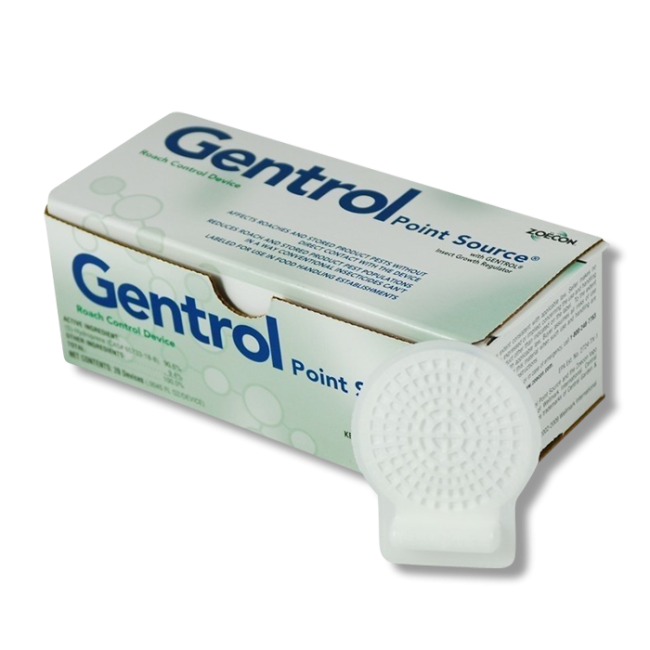 Gentrol Point Source IGR discs, manufactured by Zoecon, are an easy to use insect growth regulator for long term control of cockroaches and some pantry pests. Gentrol Point Source comes in disc form rather than in a spray, allowing for easy "set and forget" treatments of high activity areas.