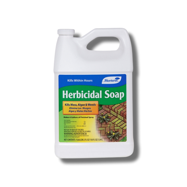 Monterey Herbicidal Soap is manufactured by Monterey and is a powerful non-selective herbicide that can kill moss, algae and weeds growing in your yard, driveway or garden. This fast-acting herbicide uses environmentally-friendly ammonium soaps as its active ingredient and can be easily mixed into a gallon sprayer without staining surfaces like stucco, concrete, pavement or wood. Monterey Herbicidal Soap can be used any time of the year when you want to treat invasive plants in cultivated areas of annual weeds and some bi-annual and perennial weeds like mustards plantain, stinkweed, sheep sorrel and more.. insecticide, miticide, and fungicide.