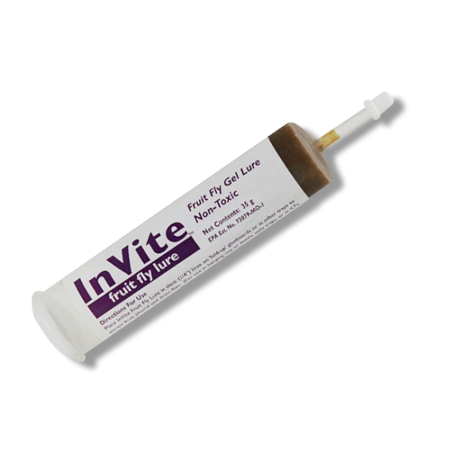 InVite Fruit Fly Lure is manufactured by Rockwell Labs and is a gel attractant that aids in trapping and monitoring small flies. Packaged in a standard size bait syringe, the gel is applied directly to glue boards of any shape and size. Insect glue traps work best with Invite Fruit Fly Lure.