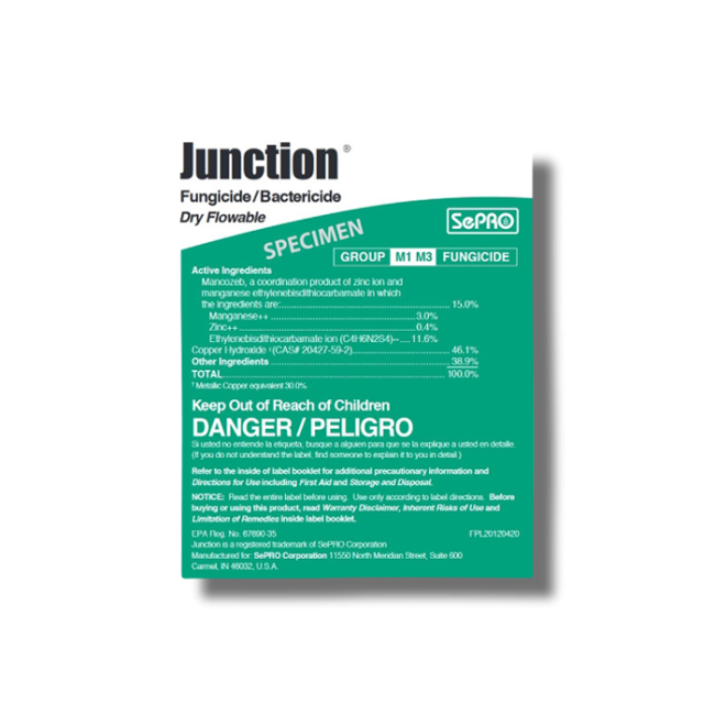 Junction is a broad spectrum, dry flowable powder fungicide. This product is made to be applied over many different plant types, and will eliminate and control a broad list of fungi, diseases, and bacteria on your plants.