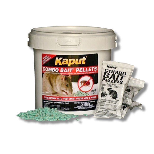 Kaput Combo Bait Pellets Place Packs, manufactured by Kaput, is easy to use granule rodenticides for controlling rodent infestations.