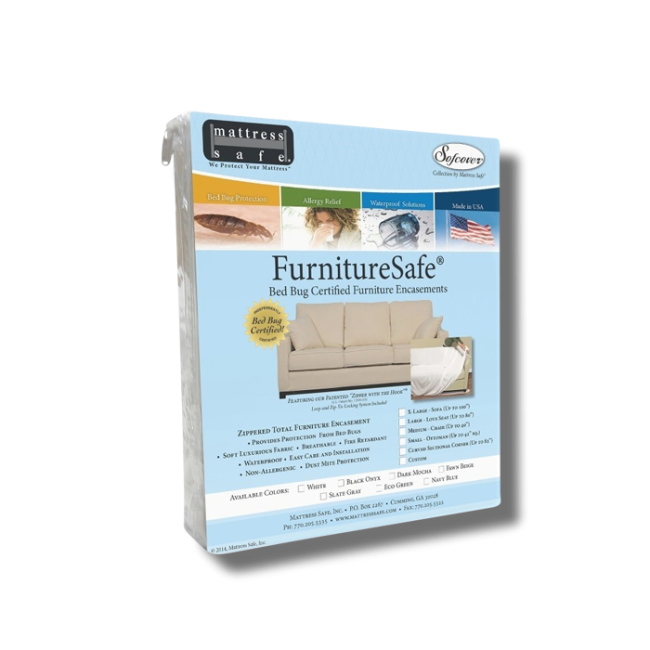 It is bedbug certified, meaning Board Certified Entomologists have put this product to the test and is certified to protect against bed bugs and dust mites. If you are worried about bed bugs infesting your home or you know you have bed bugs, an encasement is an essential part of a successful bed bug control program and the Mattress Safe Furniture Encasement is among the best of there for sofas.