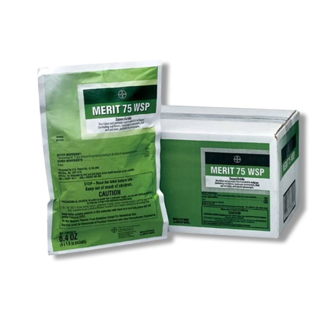 Merit 75 WSP, manufactured by Bayer, is a wettable powder that is effective against turf insects, especially against grubs. This product delivers long-lasting residual control of multiple ornamental pests.