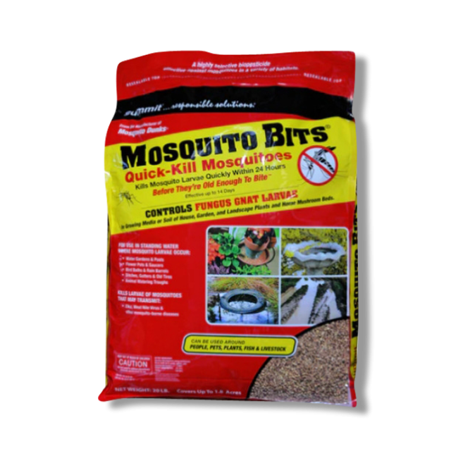Mosquito Bits Quick Kill, manufactured by Summit, is an effective form of mosquito larvae control in areas where mosquitoes are breeding and being a nuisance.