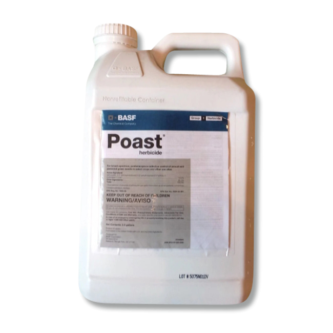 Poast Herbicide, manufactured by BASF, is a broad-spectrum post-emergent herbicide that eliminates annual and perennial grass weeds in specific crops, nonagricultural land, and other terrains.