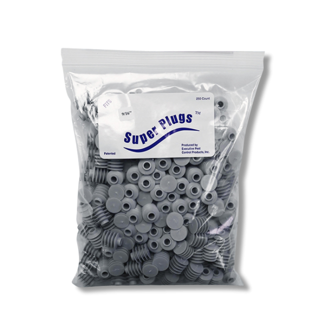 Super Plugs, manufactured by Executive Pest Control Products, are a helpful tool when conducting deep termite treatments or treatments for carpenter ants which involve drilling holes to inject treatment insecticides.