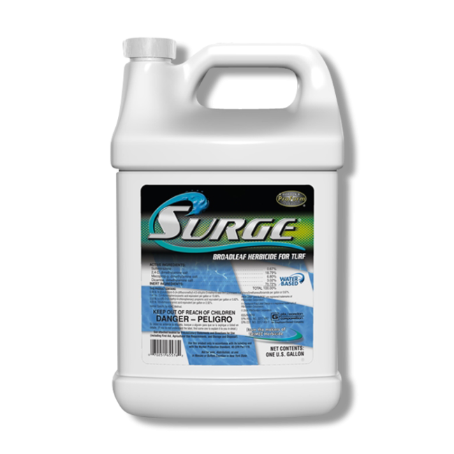 Surge Broadleaf Herbicide for Turf, manufactured by PBI Gordon, is a selective, post-emergent herbicide with 4 active ingredients for fast-acting, broad spectrum weed control. Surge can be used to treat annual, biennial, and perennial broadleaf weeds.