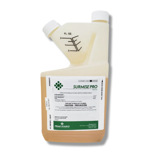 Surmise Pro Herbicide, manufactured by Prime Source LLC, is an effective non-selective herbicide that easily mixes with water to control grass and broadleaf weeds within 2 to 4 days.