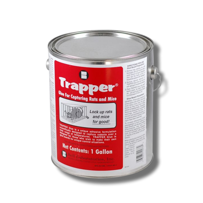 Trapper Glue, manufactured by Bell Labs, is an effective non-toxic glue that can be used to ensure rodent traps have maximum holding power for mice, rats and insects.