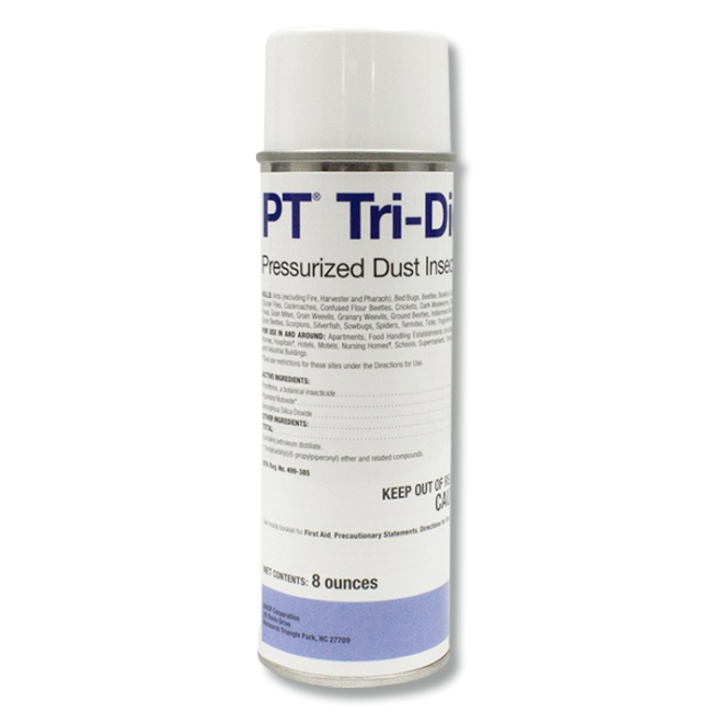 PT Tri-Die Pressurized Dust, manufactured by BASF, provides 3 types of defense against pests. It combines the ingredients pyrethrin, piperonyl butoxide, and silica dust to create a quick and powerful knockdown with a long term residual effect.